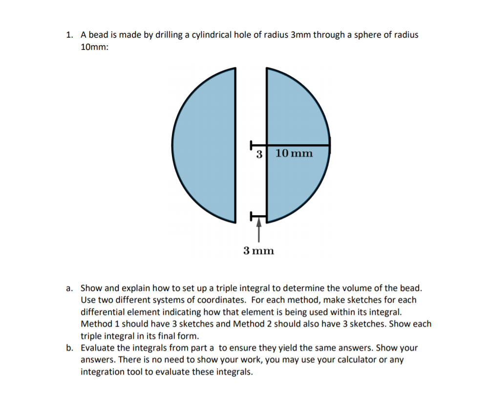Solved A Bead Is Made By Drilling Cylindrical Hole Of Radius 3 Rn Through Sphere Ol Radius 10 Mn See The Ligure A Set Up Triple Inlegral In Cylindrical Coordinates Representing The
